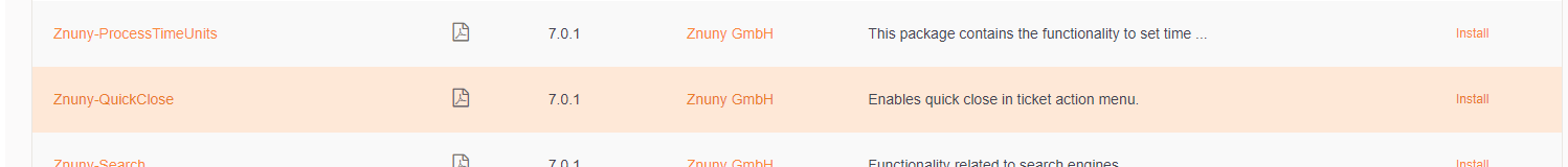 You can install the community add-on by selecting and updating the Znuny Open-Source Add-ons repository. Then click Install next to the package description.