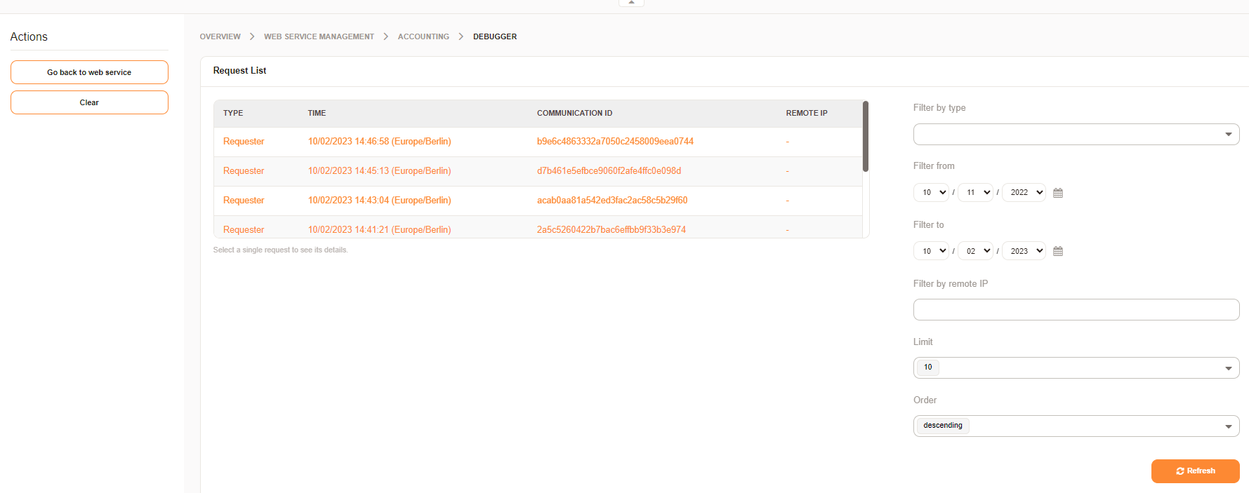 Once this is set up, (in my case you need to add a new state to the system), then you can start testing. Errors in mapping, transport and responses can be tracked in the web service debugger.