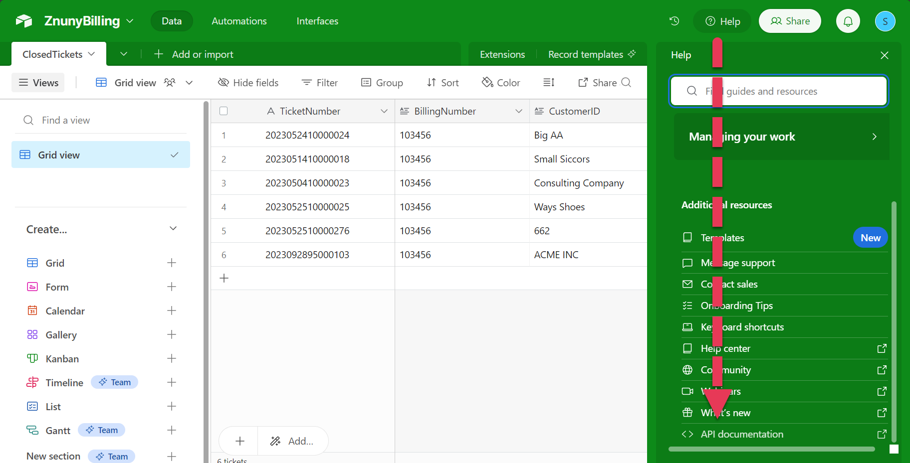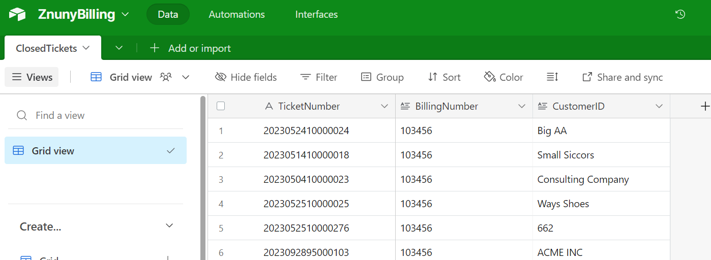 In this example, we would like to access the Airtable API, to record the customer, the time spent within the ticket, and the billing code for the request. The customer and time spent will be used from the accounted time feature and customer data within the ticket. The billing code will be read from the queue preference, by the generic interface module.