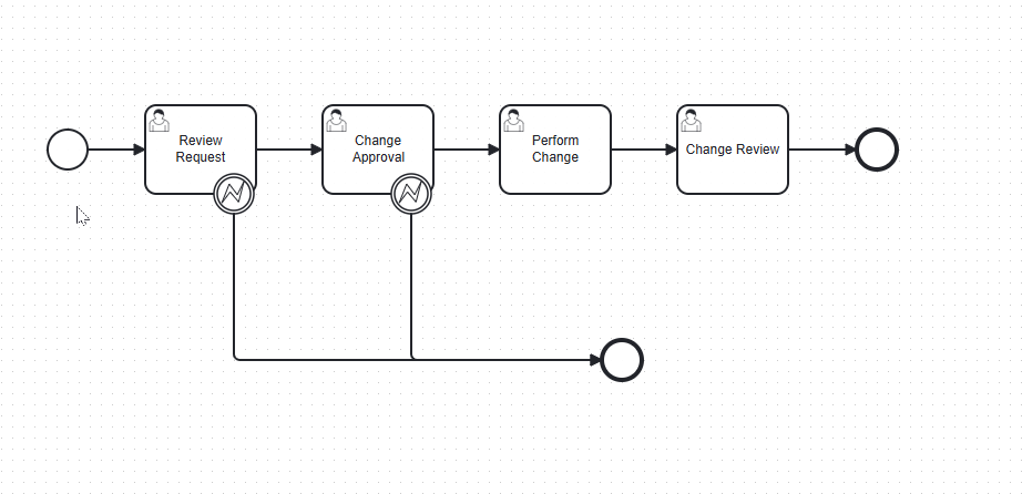 This process is a very basic change request process, which includes event signals for cancelling the process.