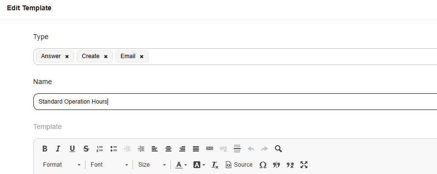 - Create: Predefined text when creating a ticket per telephone call or proactively opening a ticket per email.